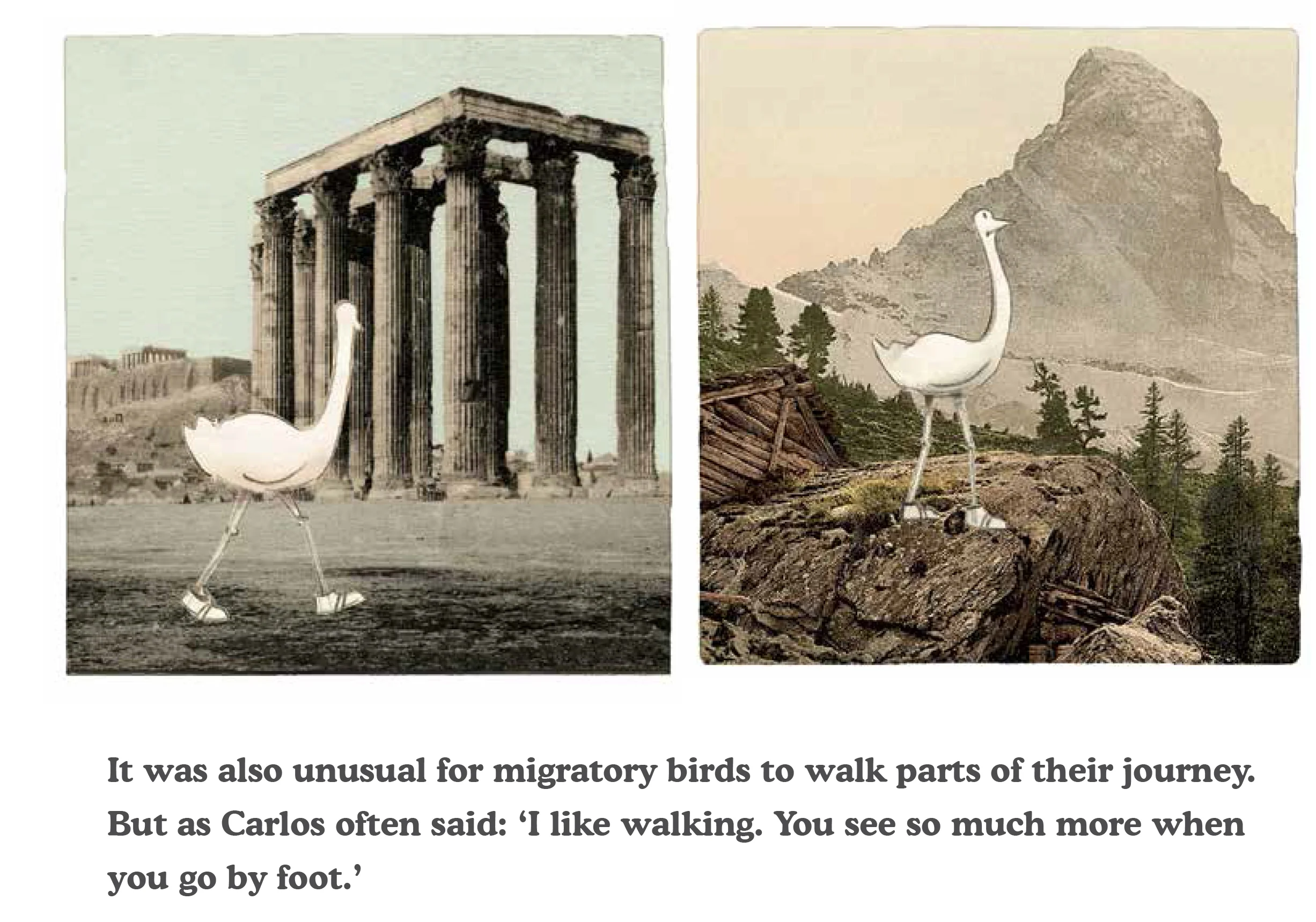 His world is so completely upended that he eventually needs rescuing by a migratory bird (wearing sneakers because he likes to walk sometimes) and a window cleaner.