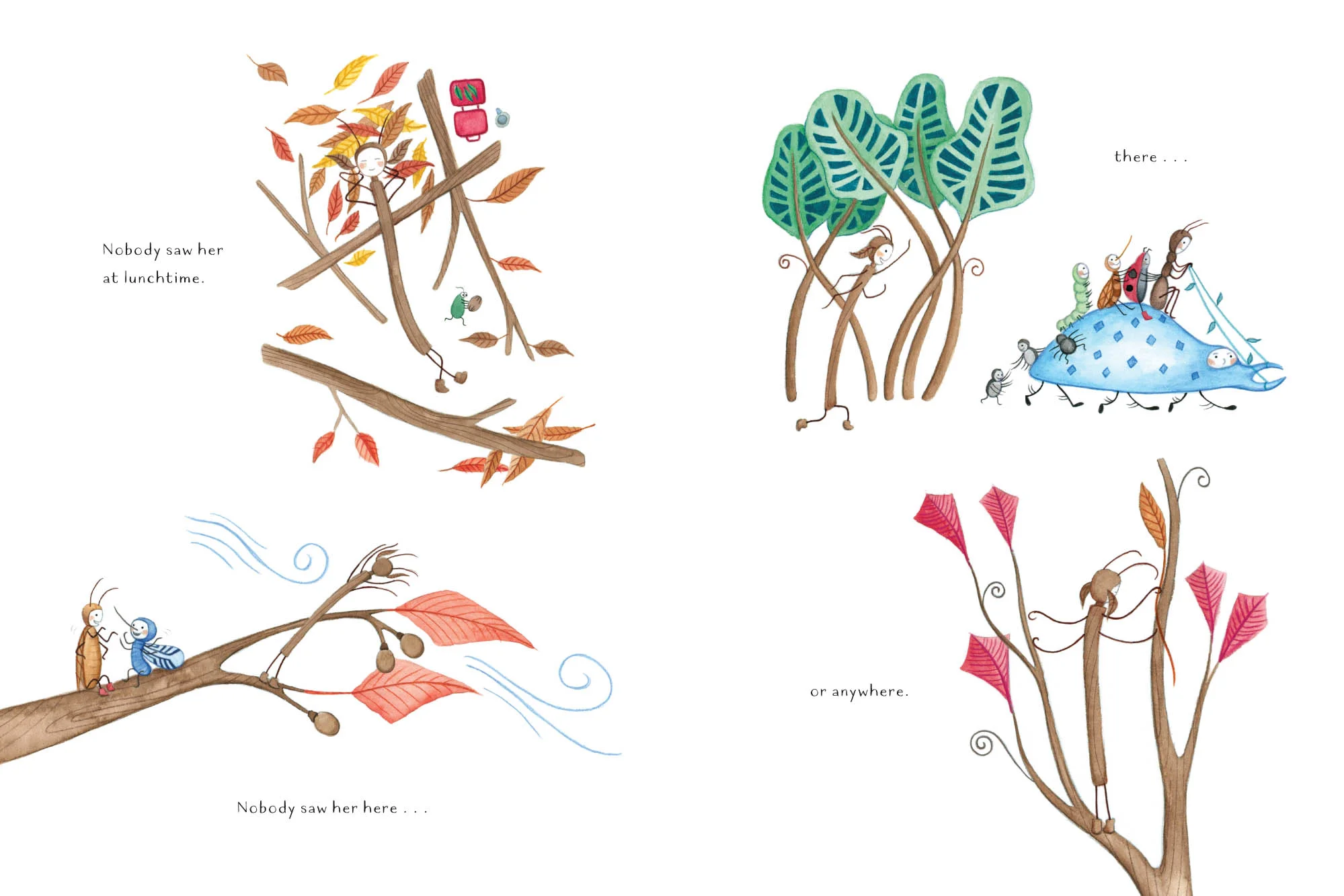 5) Most of all, Twig is about helping people stand out. It’s about bringing people out from their camouflage—whether self imposed or thrust upon them. When Miss Orb and the class *make a beautiful and colourful scarf for Heidi to wear, they make her visible. She becomes more than background—she becomes a feature. And when she is a feature, Heidi contributes to the joy of all the other bugs too. It’s a wonderful example of the importance of valuing and affirming diversity. Importantly, when Heidi wants to be less visible (like when the bugs are playing hide and seek) she can simply remove the scarf and hide herself again.