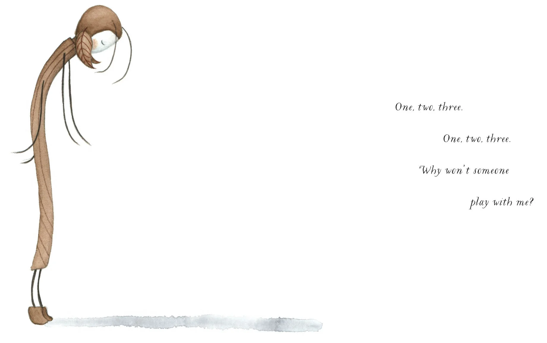 3) It's also, every bit as much, about speaking up. Children navigate a complex world—one where they are encouraged to be both deferential and precocious. Twig does a wonderful job of showing the importance of speaking for oneself. Heidi is quiet and worried but doesn’t introduce herself, or make a noise so she could be more easily seen—until at last she yelps in surprise: